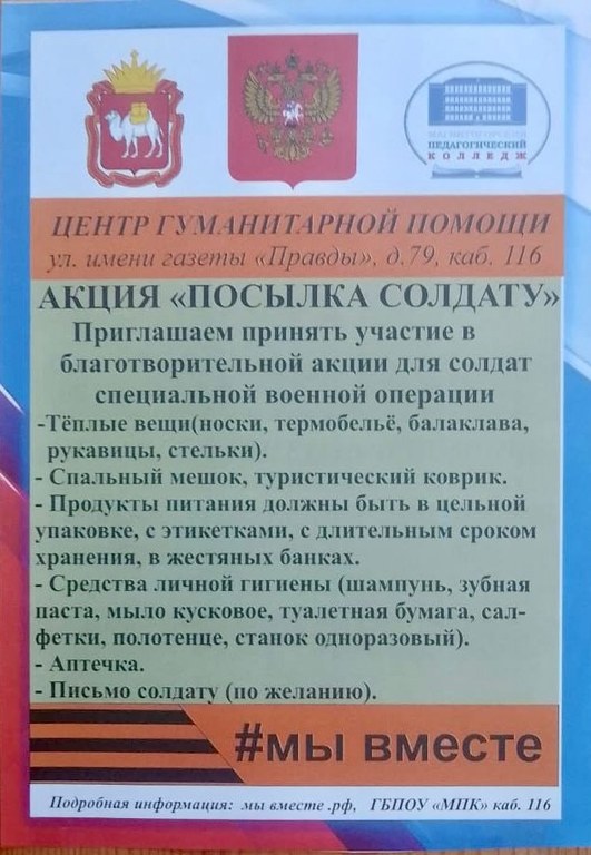 Сбор осуществляется в Центре гуманитарной помощи на базе Магнитогорского педагогического колледжа