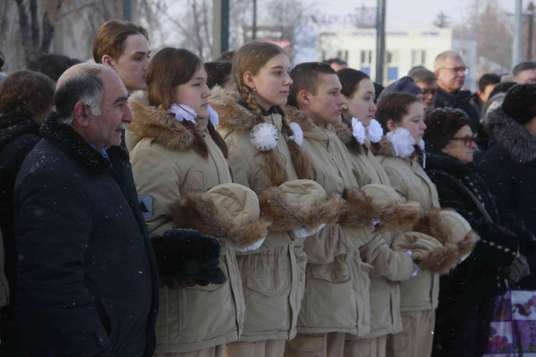 Здесь, у стелы, собравшиеся почтили память погибших минутой молчания и возложили венки, цветы.